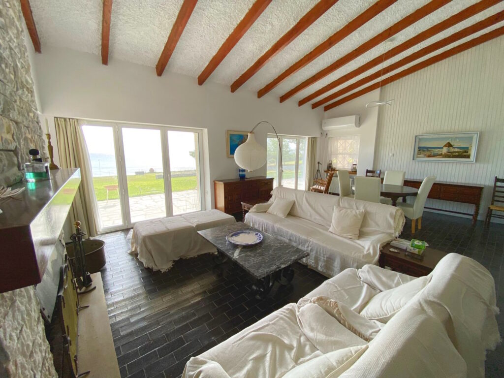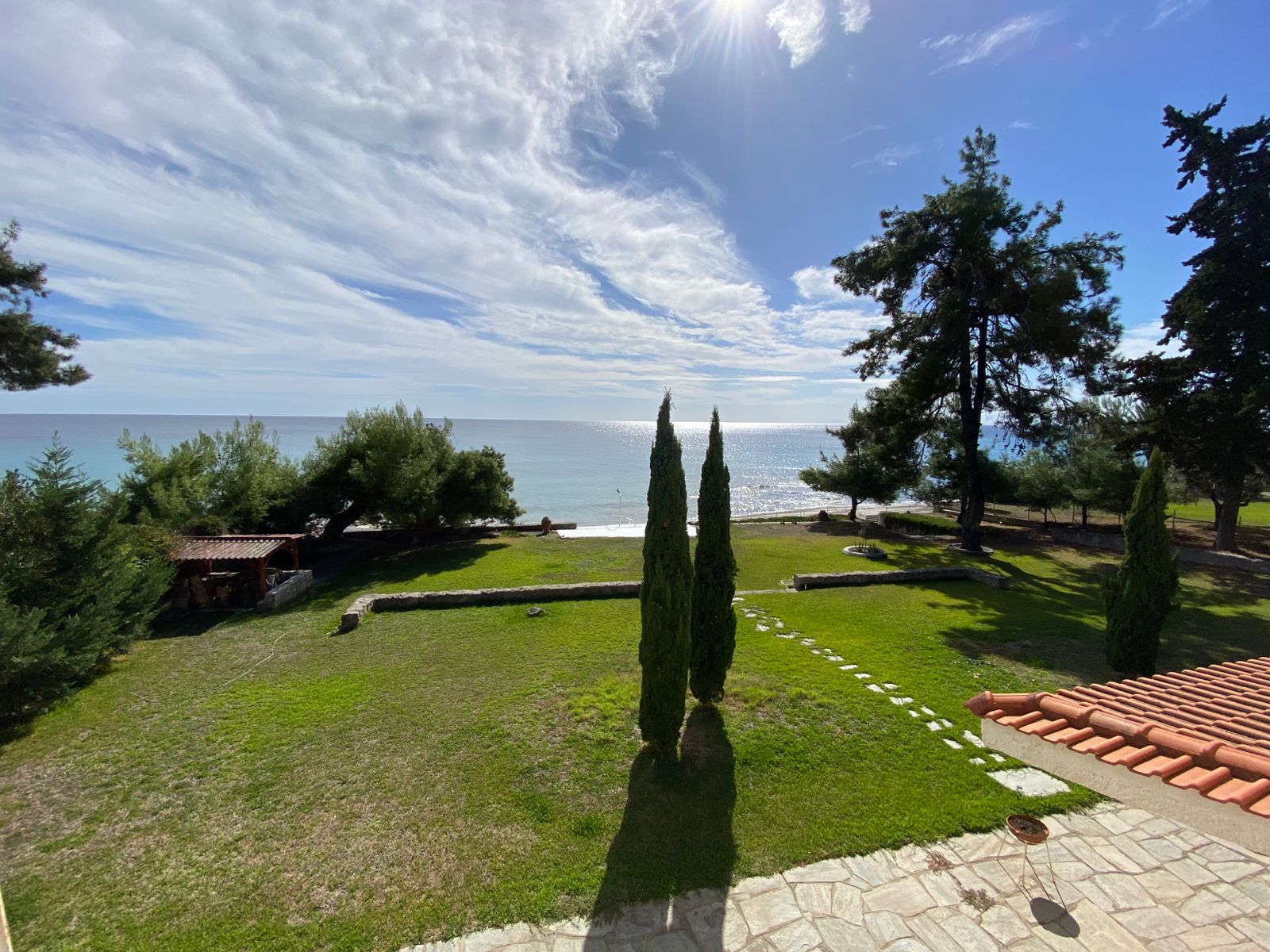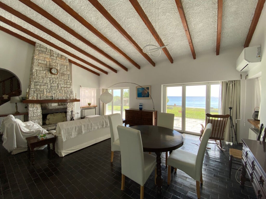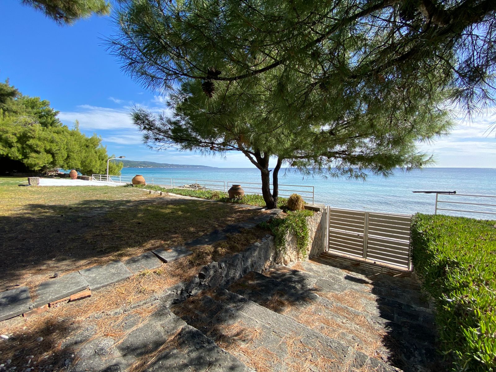 An exceptional Mediterranean residence set directly on the pristine shoreline of western Kassandra, Villa Galene is a rare opportunity to own a piece of Greece’s most coveted coastline. This timeless six-bedroom, three-bathroom villa sits within an expansive, mature garden of cypress, pine, and olive trees, with a private gated walkway leading straight to the beach. Inside, high-ceilinged living spaces with exposed wooden beams, a classic stone fireplace, and large sea-facing windows blend vintage character with modern comfort, complemented by a recently renovated kitchen and generous storage throughout.