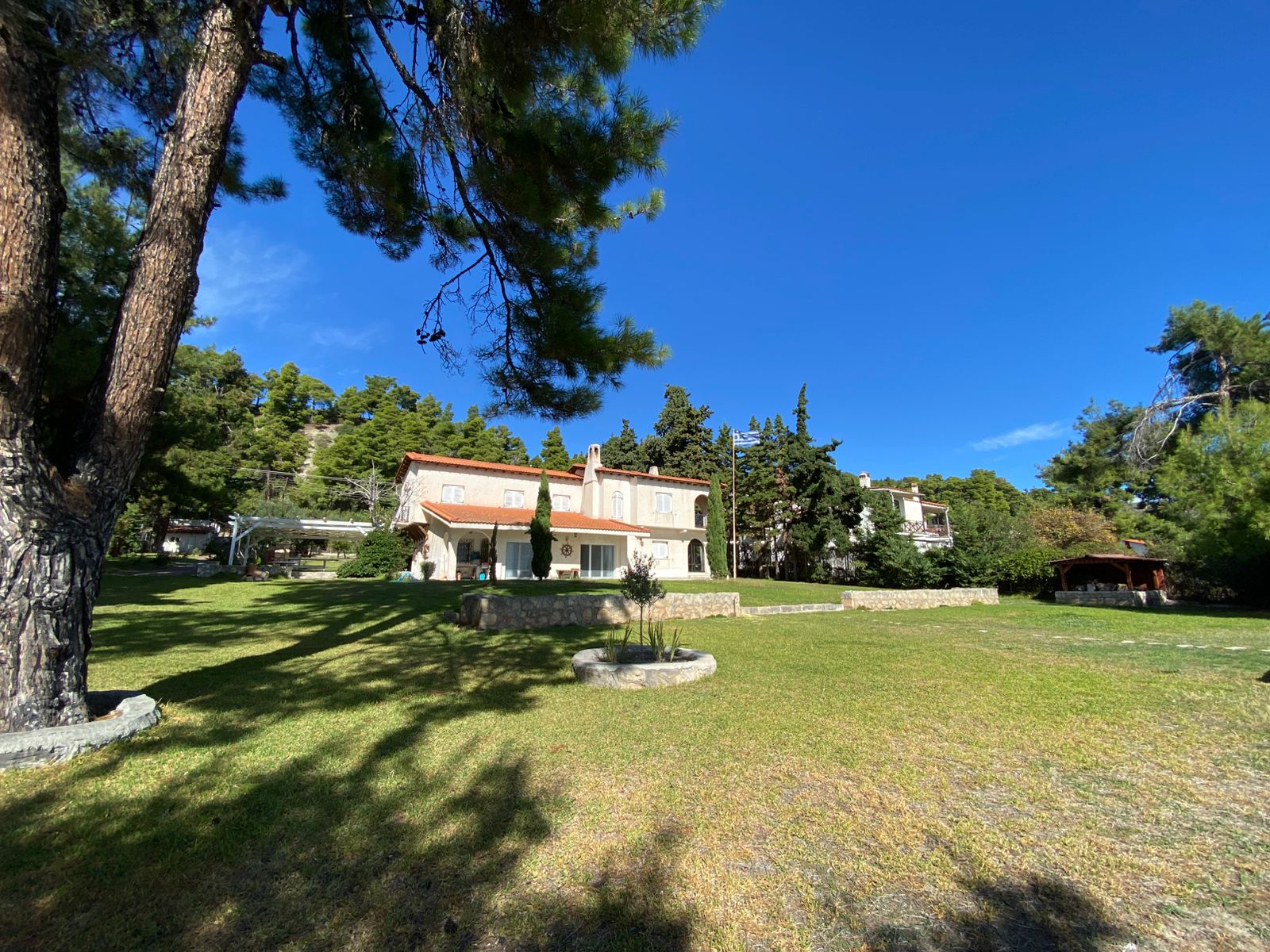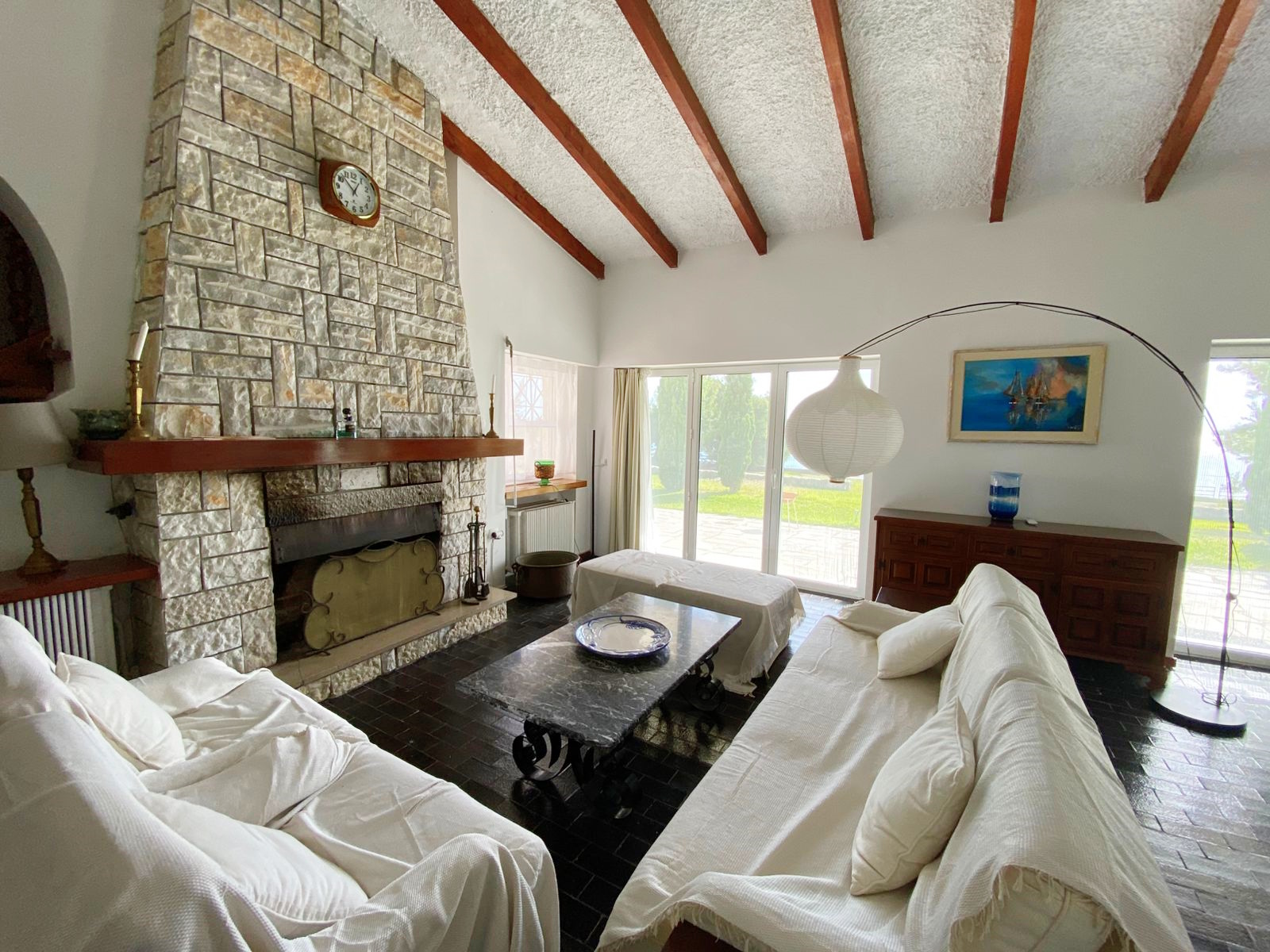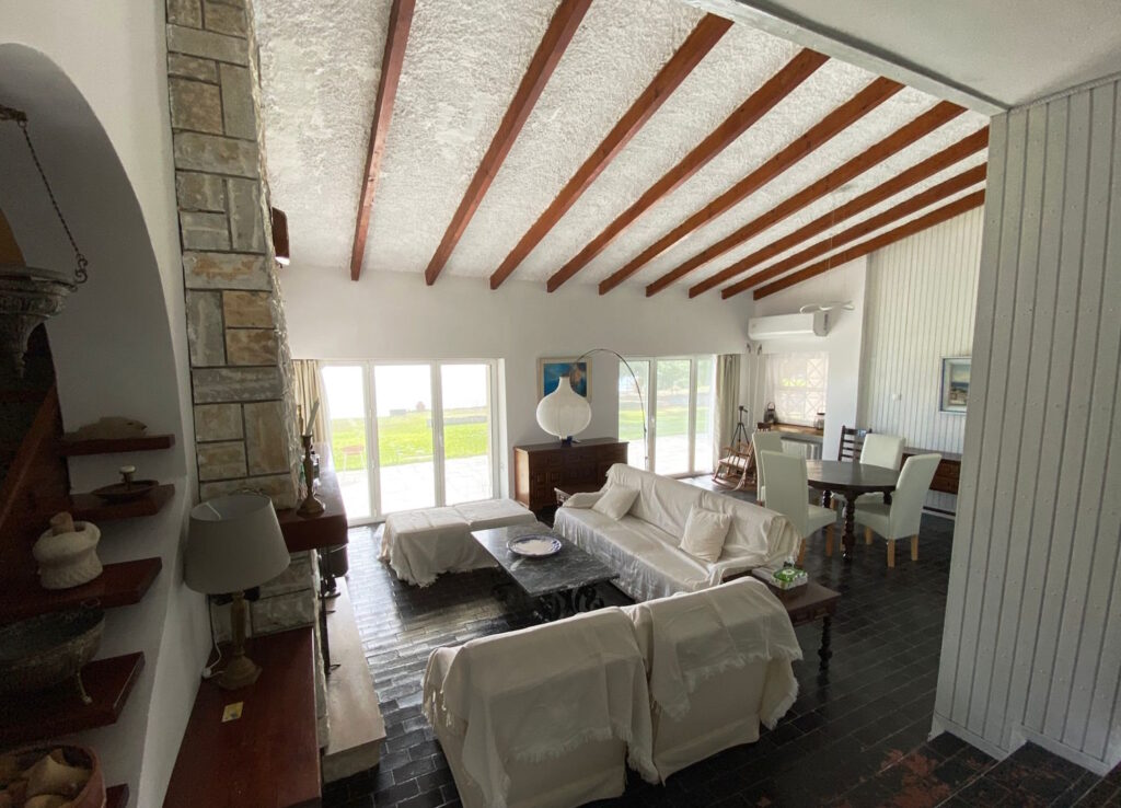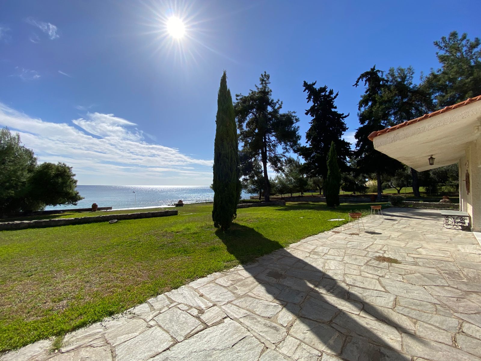 An exceptional Mediterranean residence set directly on the pristine shoreline of western Kassandra, Villa Galene is a rare opportunity to own a piece of Greece’s most coveted coastline. This timeless six-bedroom, three-bathroom villa sits within an expansive, mature garden of cypress, pine, and olive trees, with a private gated walkway leading straight to the beach. Inside, high-ceilinged living spaces with exposed wooden beams, a classic stone fireplace, and large sea-facing windows blend vintage character with modern comfort, complemented by a recently renovated kitchen and generous storage throughout.